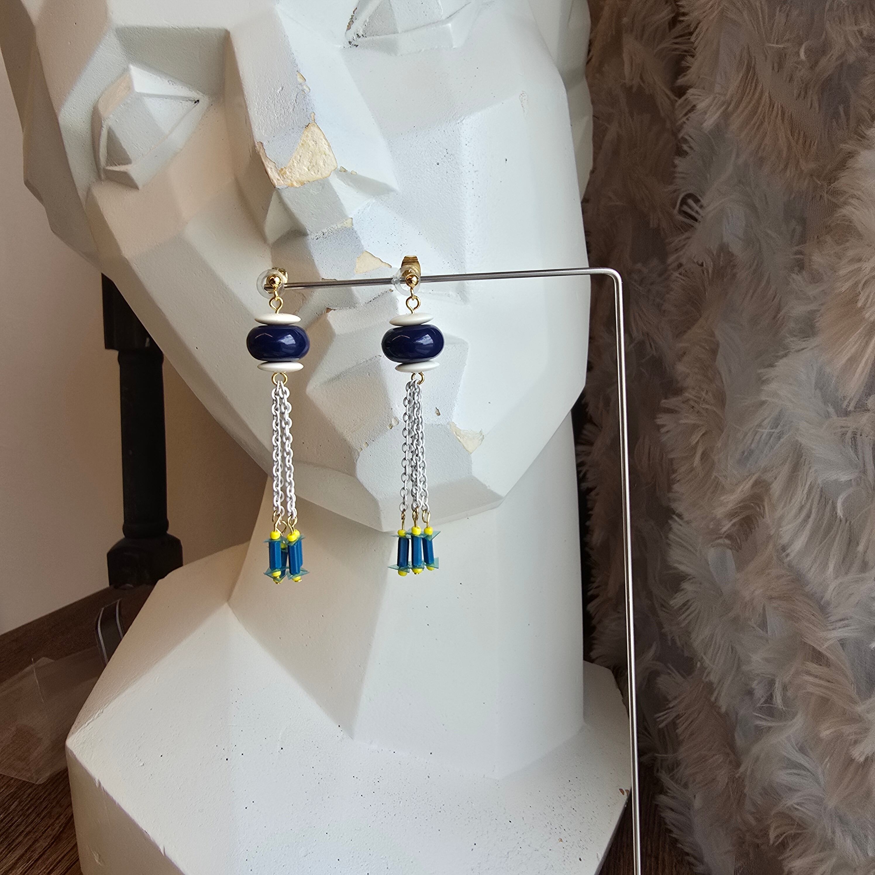 落ち着いた色味のビーズなのに、組合わさるととてもポップで可愛いピアス。